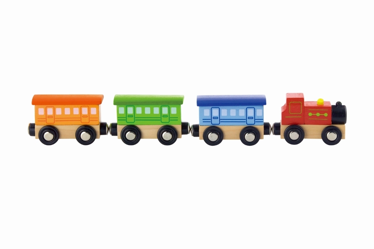 Magnetiniai sujungimai leidžia lengvai surinkti ir išardyti atskiras traukinuko dalis.