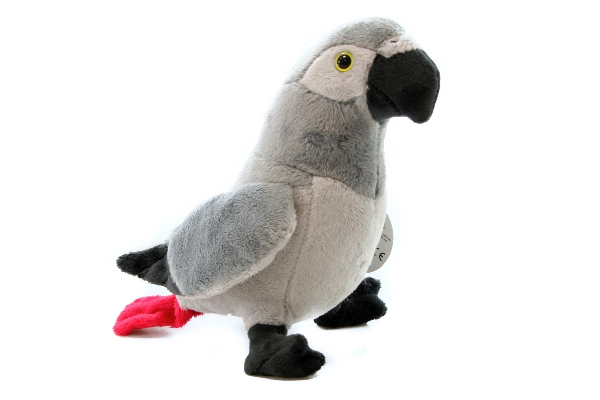 Mielas plišinis papūga pilkos spalvos pradžiugins tiek mažuosius, tiek suaugusius gyvūnų mylėtojus. Jis minkštutis, malonus liesti, o dėl maždaug 20 cm dydžio puikiai tinka glostymui ir kaip dekoracija vaikų kambaryje. Tinka nuo 0+, saugus patiems mažiausiems.