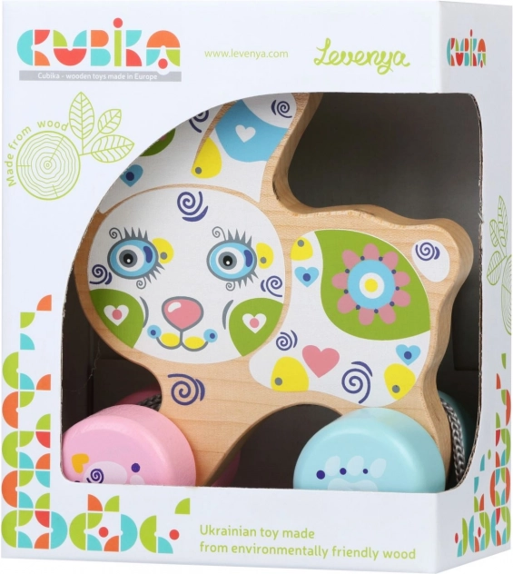 Atraskite medinių žaislų žavesį su Cubika traukiamu triušiu. Šis triušis puikiai padeda ugdyti vaikų senzomotorinius įgūdžius, kūrybiškumą ir loginį mąstymą.