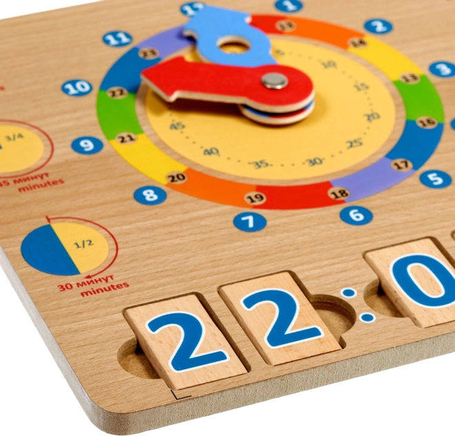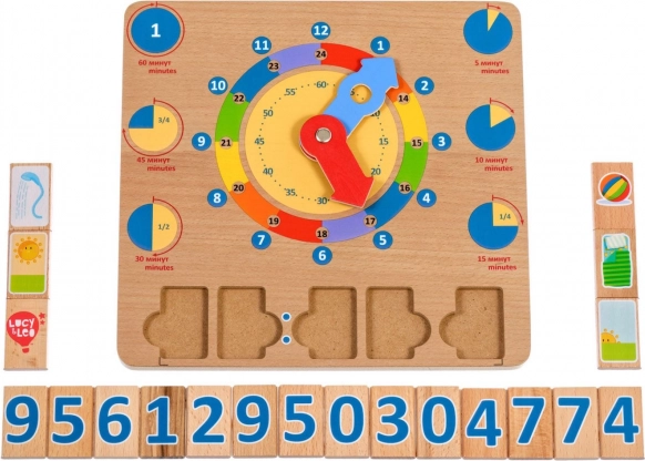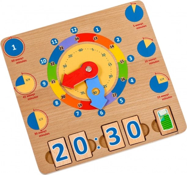 Medinė žaidimų lenta Mokomės valandas – puiki didaktinė priemonė, skatinanti natūralų mokymąsi per žaidimą. Didelės spalvotos rodyklės ir aiškiai atskirti laiko segmentai leidžia vaikams lengviau suprasti valandas, minutes ir dienos veiklas konkrečiu laiku.