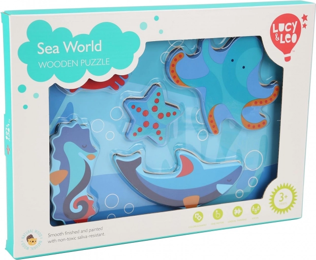 Medinė dėlionė-dėlionė Jūros pasaulis – LUCY & LEO, 6 dalių