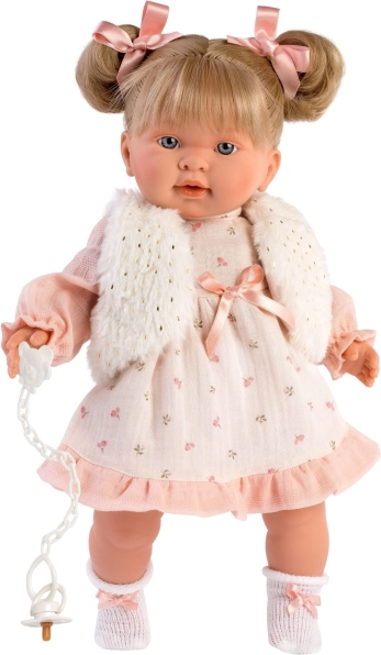 Stilingas 4 dalių drabužėlių rinkinys 42 cm lėlei iš LLORENS pradžiugins švelniomis rožinėmis suknelėmis, minkšta liemenėle ir kelnaitėmis su pakabėliu. Pagaminta Ispanijoje, puikiai tinka kasdieniam žaidimui ir šventinėms akimirkoms. Tinka nuo 3 metų.