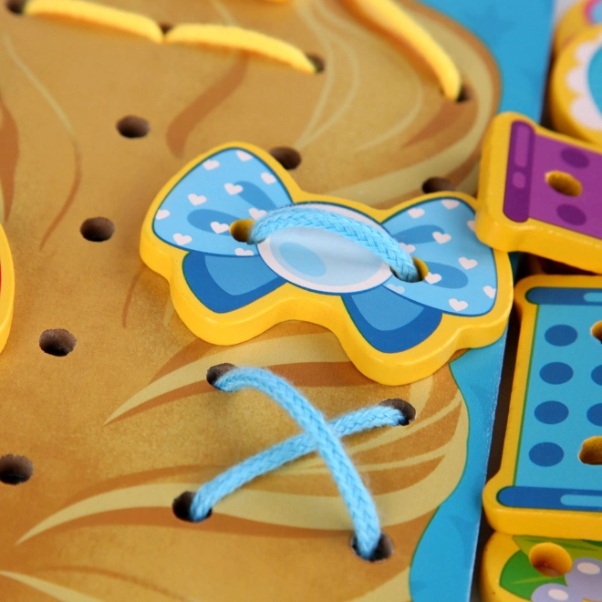 Vėrimas ir siūlų leidimas per skylutes stiprina pirštų raumenis, akių–rankų koordinaciją ir susikaupimą. Ideali veikla ikimokyklinio amžiaus vaikams.