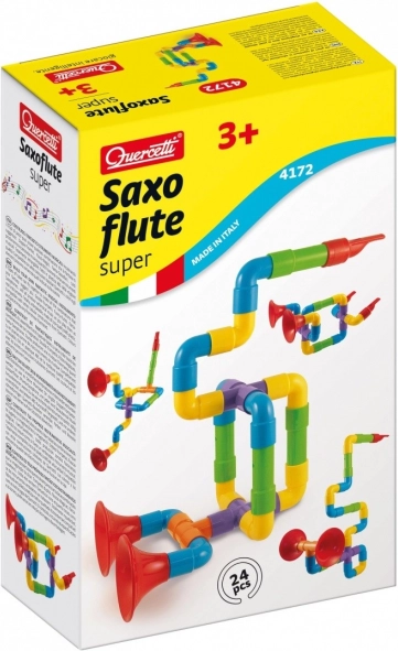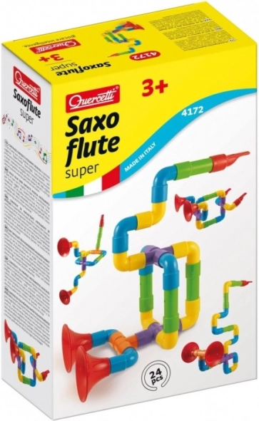 Su Quercetti Saxoflute Super rinkiniu vaikai gali pasigaminti savo muzikinius instrumentus, tokius kaip saksofonai, fleitos ar trimitai, iš spalvotų plastikinių vamzdelių ir jungčių. Rinkinyje yra 24 detalės, leidžiančios kurti įvairias kombinacijas ir formas. Taip žaislas lavina ne tik kūrybinį mąstymą, bet ir smulkiąją motoriką bei vaizduotę.