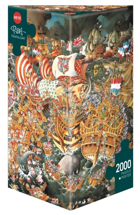 Dėlionė Trafalgaro mūšis iš žinomo karikatūristo Michaelo Rybos nukels jus į istorinius momentus su nuostabia grafika. Pakuotėje yra 2000 detalių ir netradicinė trikampė dėžė su plakatu kaip pavyzdžiu dėliojimui.