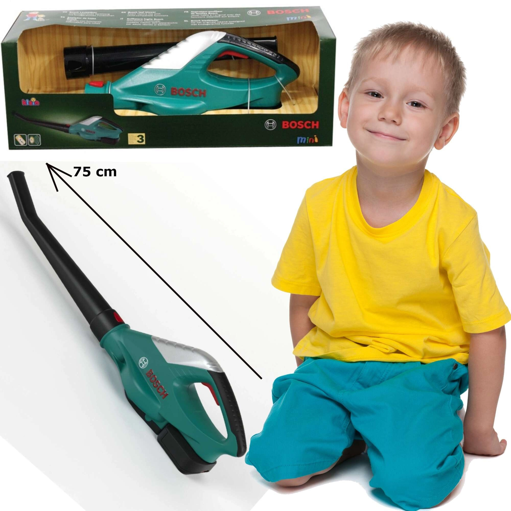 Šis vaikiškas lapų pūstuvas autentiškų BOSCH spalvų (žalia su juodais, raudonais ir sidabriniais elementais) ištikimai atkuria tikrą sodo įrankį. Dėl licencijuoto dizaino ir kokybiško Klein gamybos atlikimo jis atrodo realistiškai, tačiau yra visiškai saugus žaidimui.