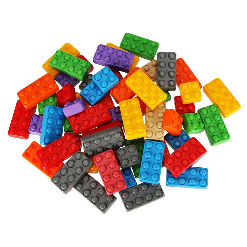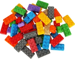 Įvairios spalvos ir formos įkvepia vaikus statyti bokštus, namelius ir paprastas figūrėles.