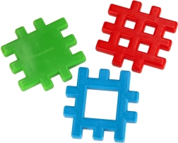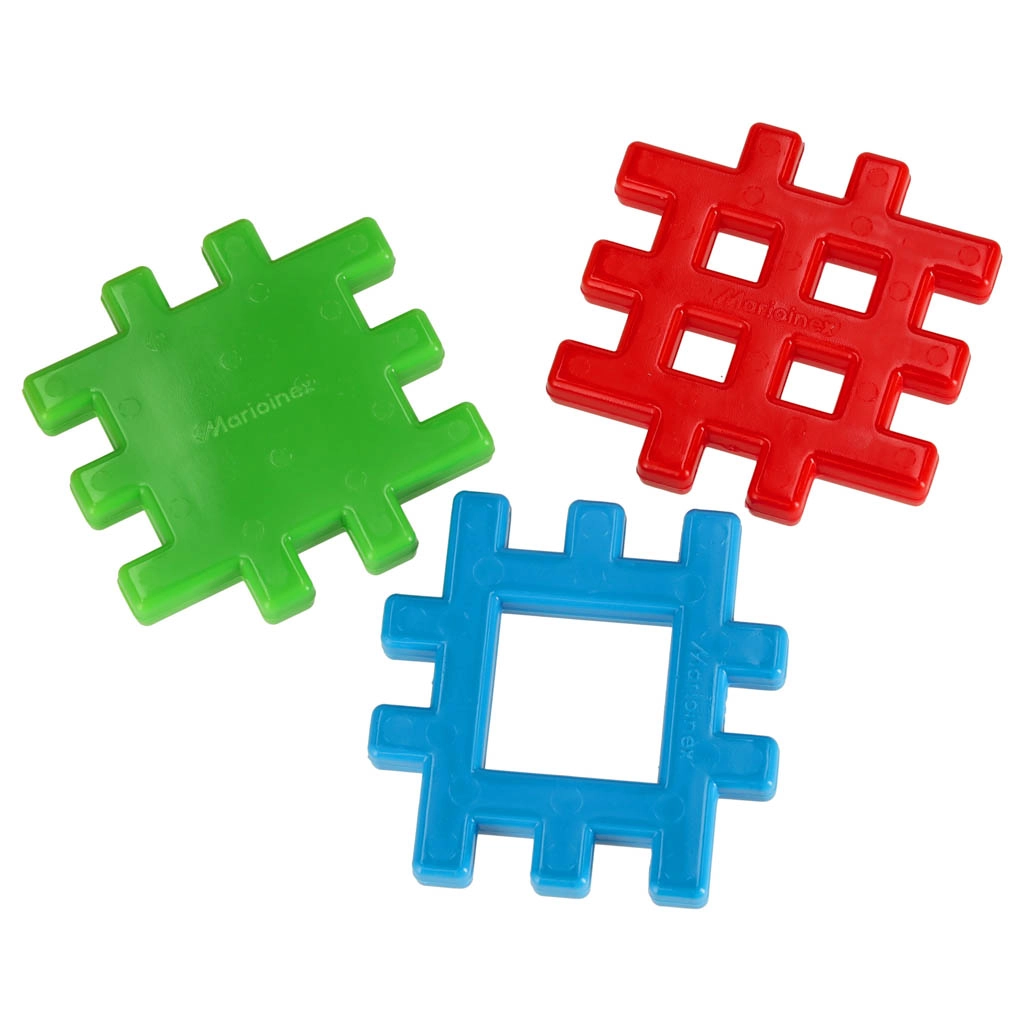 Maždaug 10,5 × 10,5 cm dydžio kaladėles vaikams lengva suimti ir saugiai sujungti. Puikus pirmasis konstruktorius ikimokyklinukams.