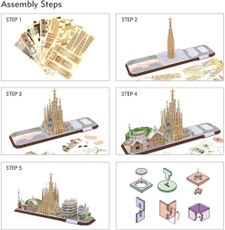 Ši 3D dėlionė perkelia į jūsų namus Barselonos atmosferą, įskaitant garsiąją SAGRADA FAMILIA ir kitus architektūros šedevrus. Detalės yra iš anksto išpjautos, lengvai išsiima iš lapo ir pagal instrukciją sklandžiai surenkamos be klijų ir žirklių. Baigtas modelis puikiai atrodo kaip stilingas akcentas svetainėje, darbo kambaryje ar vaikų kambaryje.