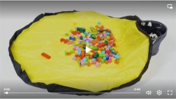 Išskleiskite didelį kilimėlį (Ø 135 cm), leiskite vaikams žaisti, o pabaigoje patraukite už virvelės su stabdikliu – žaislai akimirksniu atsidurs krepšyje.