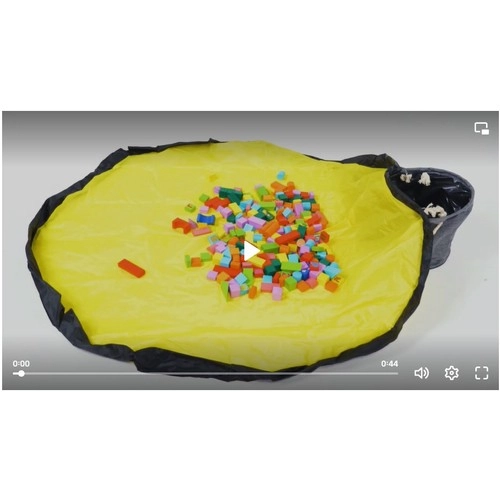 Praktiškas 2-in-1 krepšys su žaidimų kilimėliu, leidžiantis per kelias sekundes greitai sutvarkyti kaladėles ir žaislus. Didelis 135 cm skersmens kilimėlis yra saugi žaidimų erdvė, o dėl užveržiamos virvelės su stabdikliu lengvai virsta nešiojamu maišu. Atsparus vandeniui, su tvirtomis virvinėmis rankenomis ir aukštu kilimėlio borteliu, kad žaislai neiškristų.