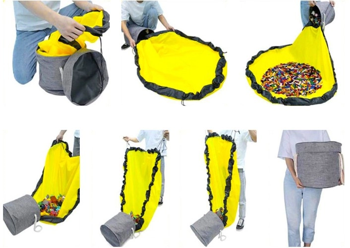- Žaislų krepšys su integruotu žaidimų kilimėliu