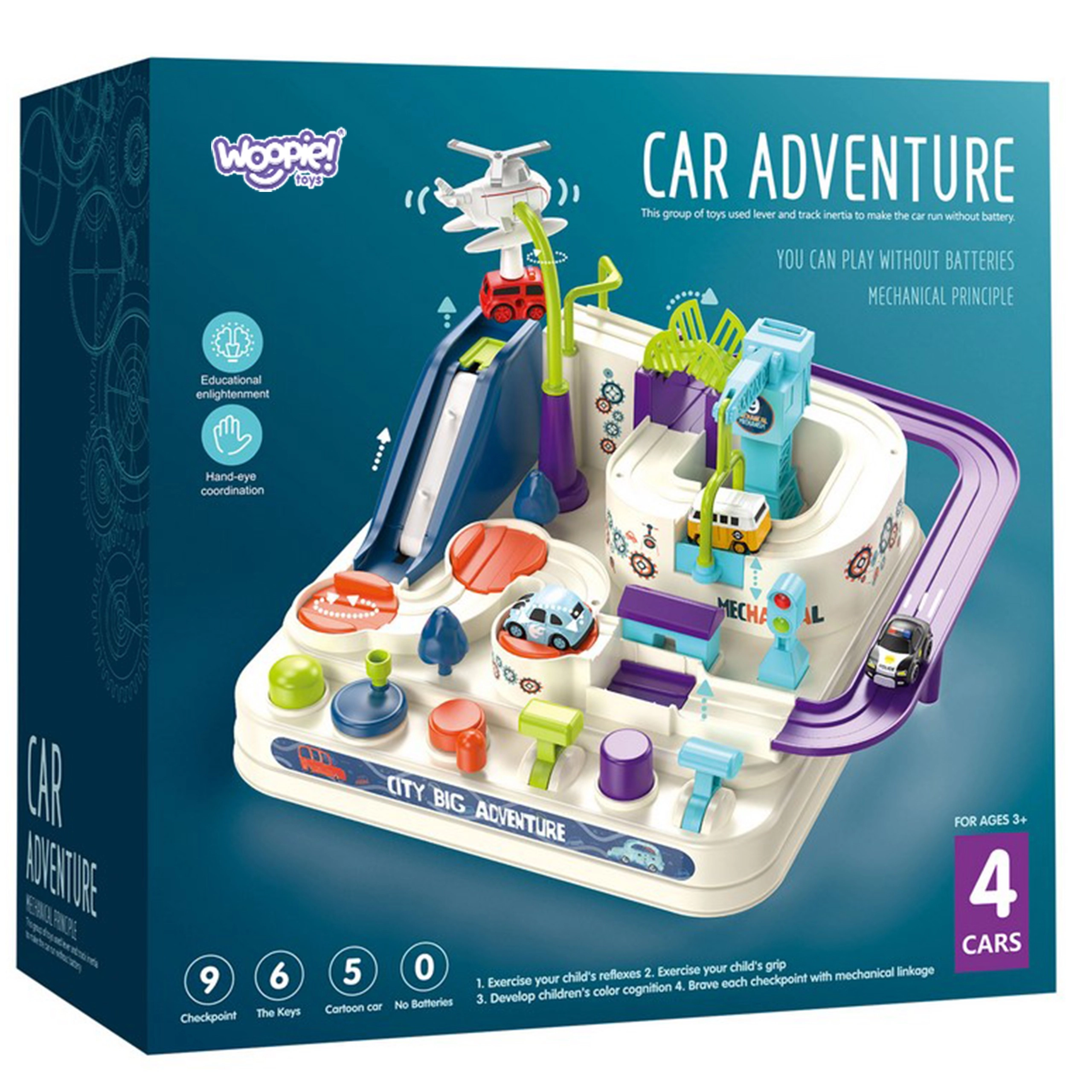 Atraskite nuotykių kupiną pasaulį su interaktyviu Woopie „Miesto transporto priemonės“ rinkiniu. Vaikai tampa vairuotojais, kurie įveikia tiltus, pavaras ir kitas kliūtis, o automobiliukai gali laisvai tyrinėti trasą. Dėl apgalvotos konstrukcijos ir magnetinių elementų kiekviena kelionė yra kitokia ir kupina adrenalino.