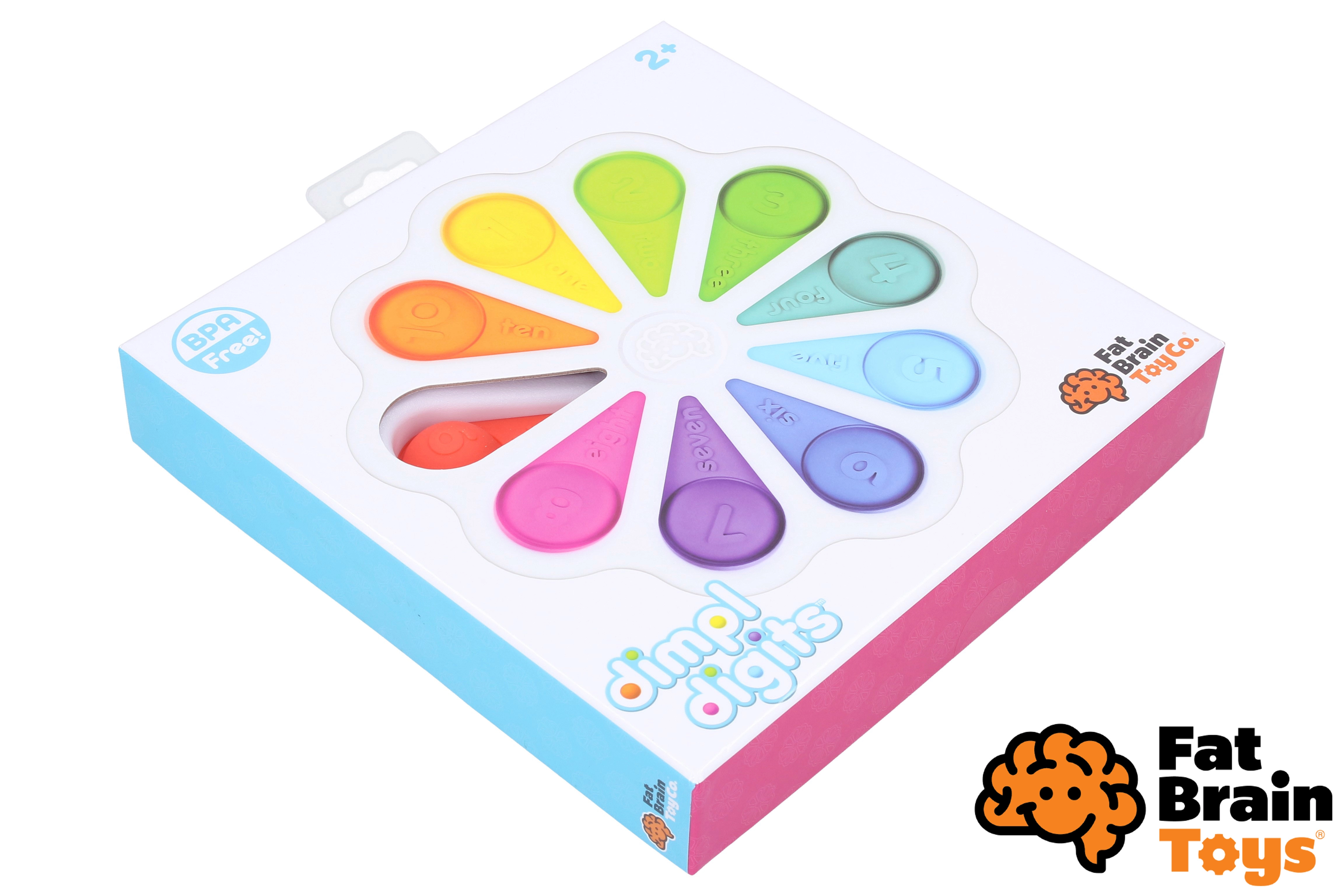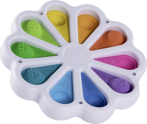 Jutiminis žaislas Dimpl Digits suteikia vaikams raminantį spragtelėjimo efektą ir kartu pirmuosius žingsnius skaičių pažinimo link. Viršutinėje kiekvieno burbuliuko pusėje yra skaitmuo su anglišku žodžiu, apatinėje – taškelių skaičius, atitinkantis konkretų skaičių – taip vaikai natūraliai sieja regą, lytėjimą ir bazinius matematinius įgūdžius.