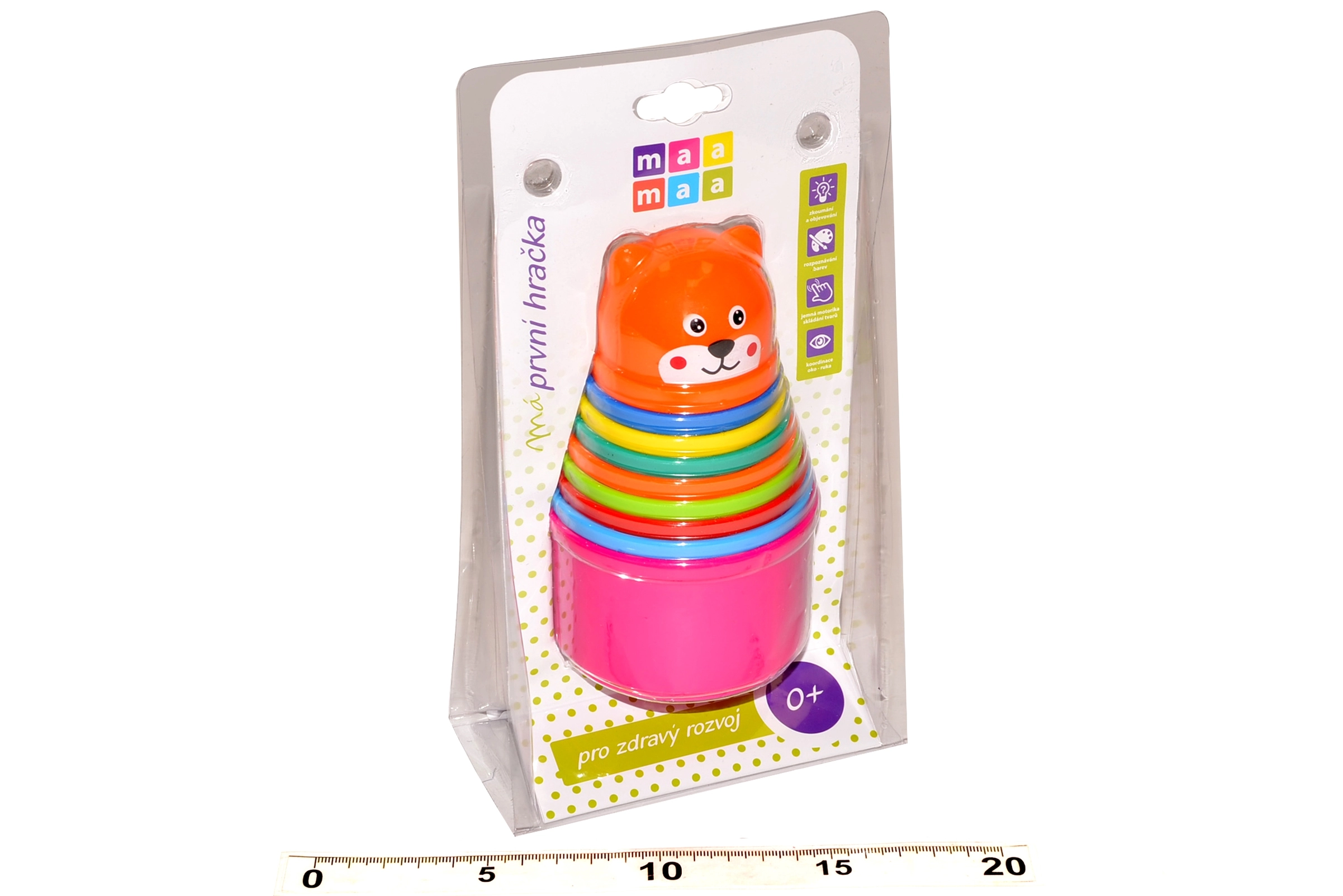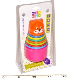 Mėgstamas vaikų žaislas smulkiajai motorikai ir spalvų suvokimui lavinti. Rinkinyje yra 9 skirtingo dydžio puodeliai, kuriuos galima sudėti vieną į kitą arba vieną ant kito. Skatina akies ir rankos koordinaciją, spalvų pažinimą ir dydžių mokymąsi žaismingu būdu.