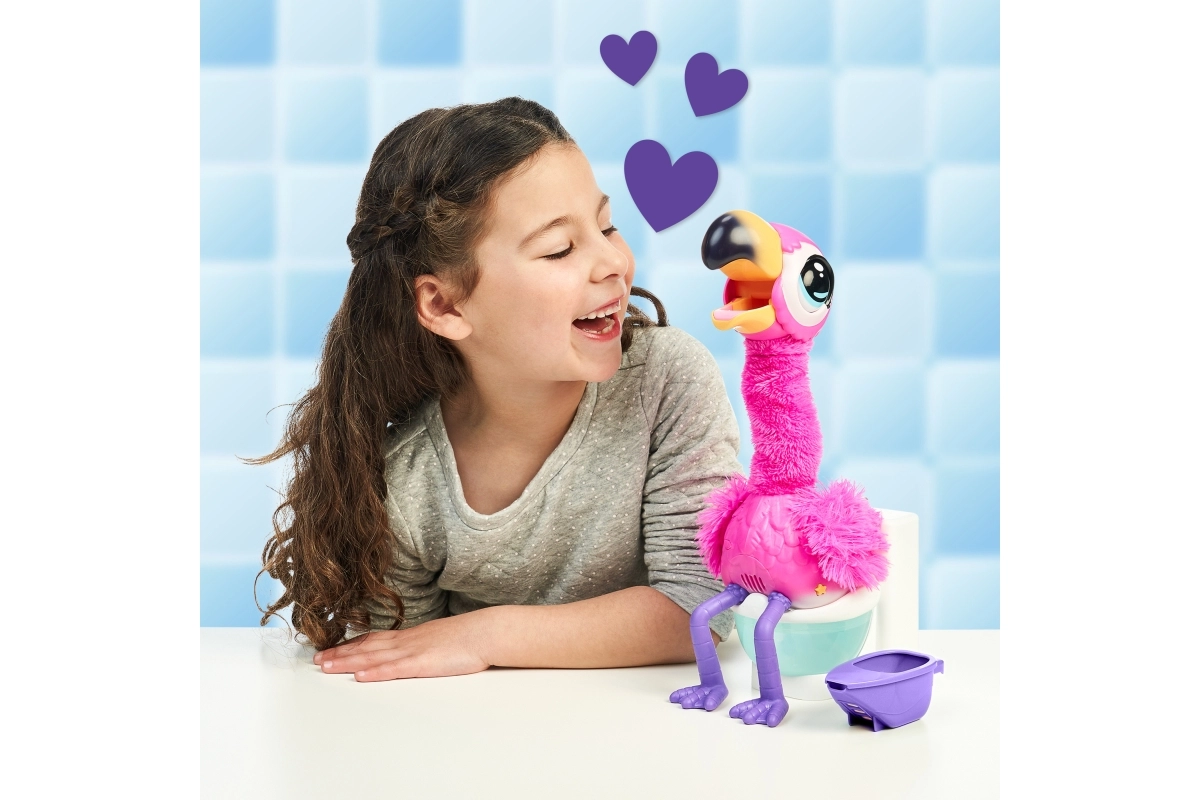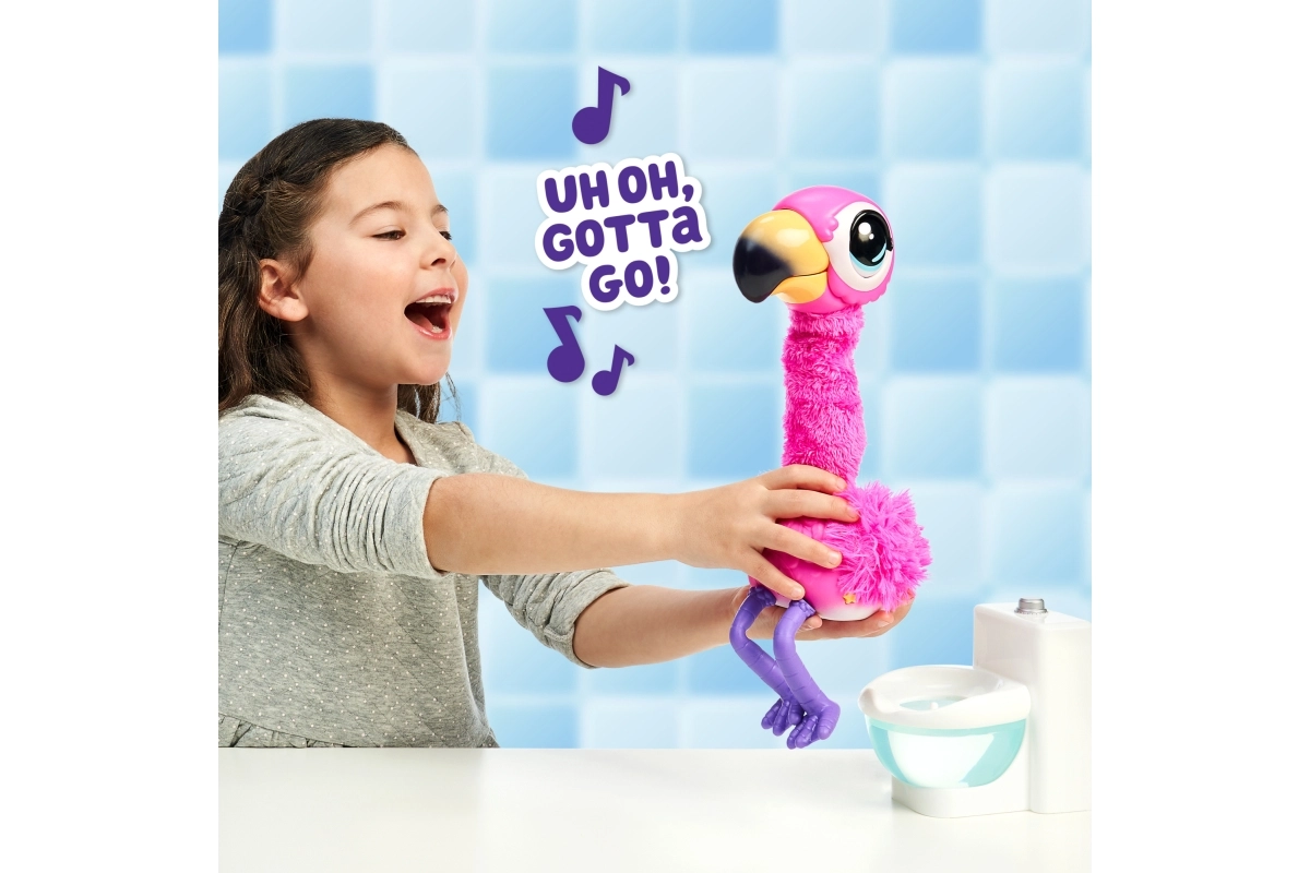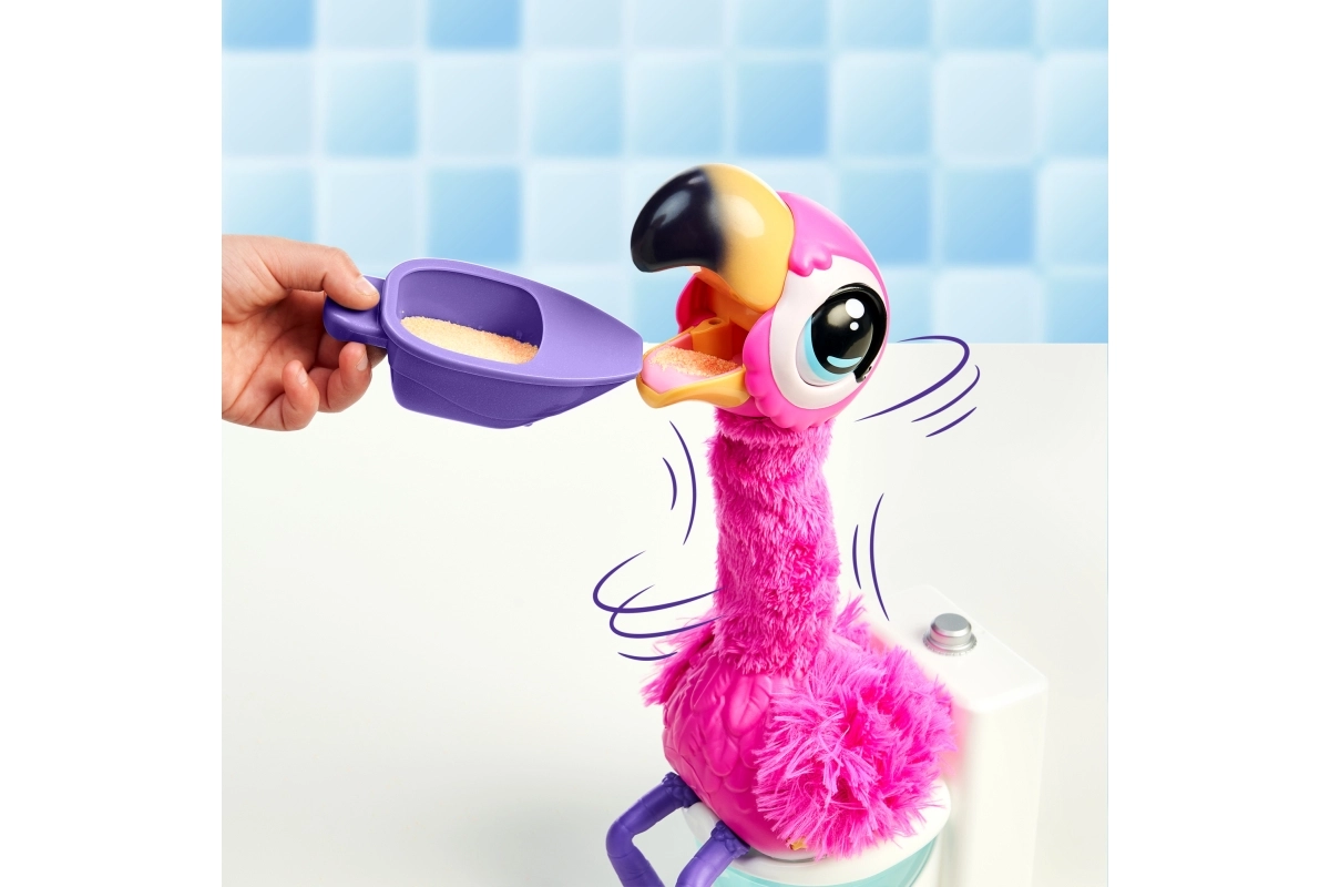 Smagus interaktyvus flamingas Little Live Pets pradžiugins vaikus tuo, kad leidžiasi maitinamas specialiu Aqua smėliu, dainuoja, šoka, kalba ir po valgio eina į tualetą. Tai paskelbia angliška fraze „Uh, oh, I gotta go“, kartoja savo šeimininko žodžius, o dėl pakartotinai naudojamo smėlio pramoga kartojasi vėl ir vėl.