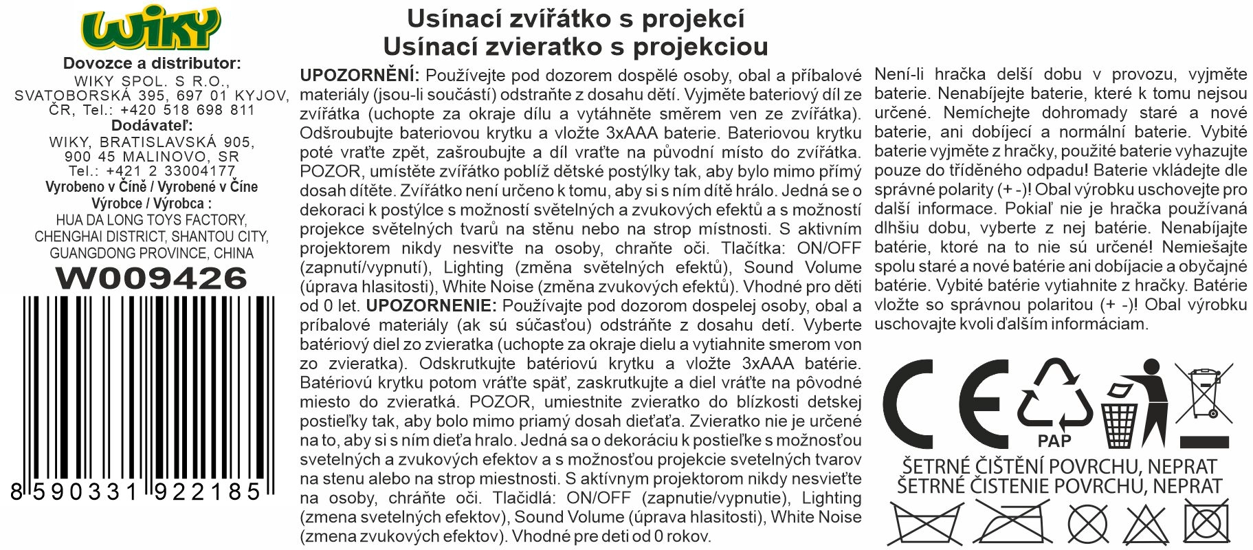 Ši minkštučė užmigdukė sujungia žaislą, projektorių ir raminančius garsus viename. Integruotas projektorius projektuoja švelnias žvaigždes ir besikeičiančias spalvas, kurios patraukia vaiko dėmesį ir padeda nusiraminti prieš miegą. Melodijos ir šniokštimas kuria malonią nuotaiką ir palengvina užmigimą jau nuo pirmųjų gyvenimo dienų.