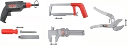 - Realistinės funkcijos: besisukantis grąžtas, judantis pjūklas, atsuktuvai varžtams ir veržlėms.