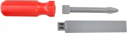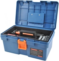 - lagaminėlis, rankinis gręžtuvas, plaktukas, kryžminis atsuktuvas, plokščias atsuktuvas, varžtai ir veržlės, rankinis pjūklas, reguliuojamas raktas, žiedinis raktas, galvutinis raktas, plokščias raktas, slankmatis, glaistyklė, dilde (keičiama antgalis), gulsčiukas, kampainiai, jungiamieji elementai su angomis