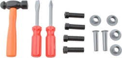 Šis gausiai sukomplektuotas vaikiškas įrankių rinkinys suteikia vaikams realistišką ir saugų mažųjų meistrų žaidimą. Dėl rankinio gręžtuvo su besisukančiu grąžtu (be baterijų), funkcionalių atsuktuvų ir reguliuojamų raktų vaikai lavina akių–rankų koordinaciją ir įgyja pagrindinių darbo įgūdžių.