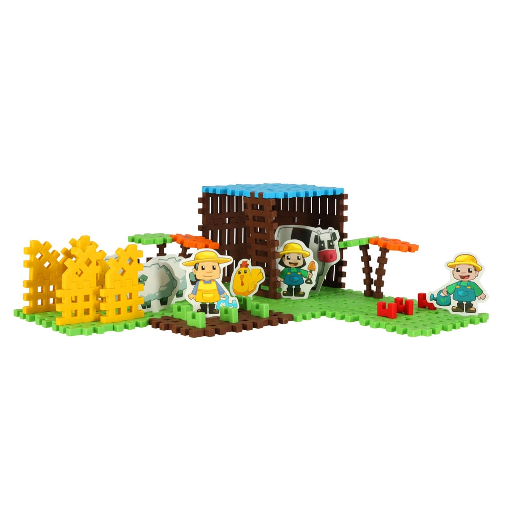 Susikonstruokite savo ūkį su ūkininkų figūrėlėmis ir gyvūnais, įskaitant arklį, karvę ir vištą. Šis konstruktorius padeda vaikams lavinti vaizduotę ir praktinius įgūdžius.