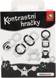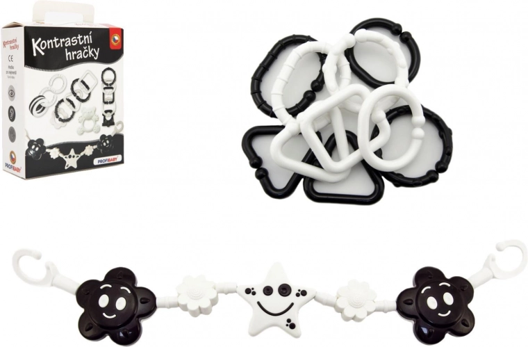Šis kontrastinis rinkinys juodai baltos spalvos derinyje sukurtas patiems mažiausiems kūdikiams, kurie dar neskiria spalvų. Itin kontrastingi raštai natūraliai traukia dėmesį ir skatina regos stimuliaciją bei susikaupimą. Dėl apgalvotų formų žaislus lengva sugriebti mažyte ranka ir jie padeda lavinti sugriebimo refleksą bei akių–rankų koordinaciją.
