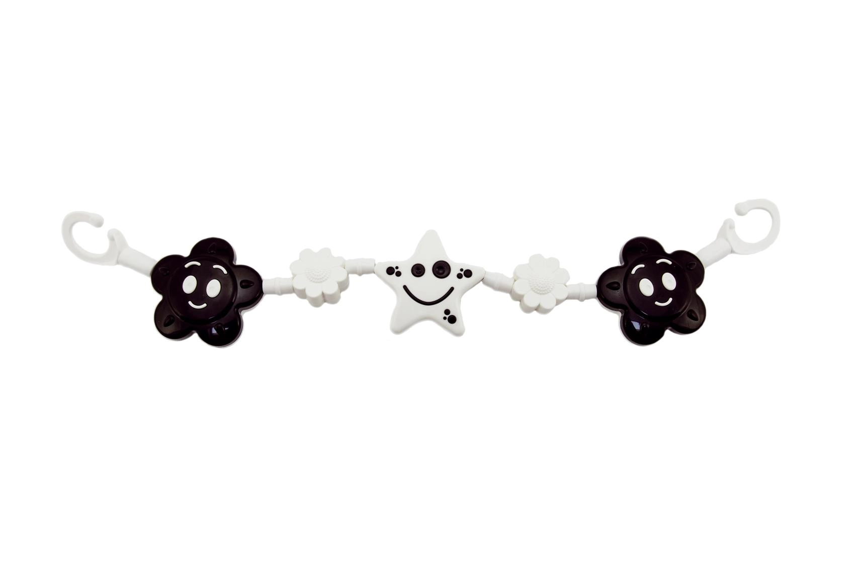 Juodai balta pakabinama apsauga su gėlėmis ir žvaigždele patraukia kūdikio dėmesį ir pramogauja pasivaikščiojimų metu. Lengvai tvirtinama kabliukais prie vežimėlio ar lovytės.