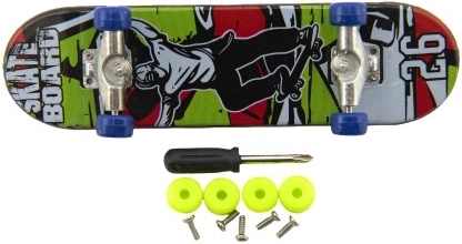 Pirštų riedlentė puikiai tinka pramogai ir įgūdžių lavinimui. Ši 9 cm ilgio riedlentė turi keičiamius ratukus, suteikiančius pritaikymo galimybių ir begalę pramogos valandų.
