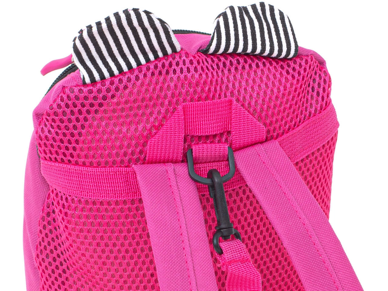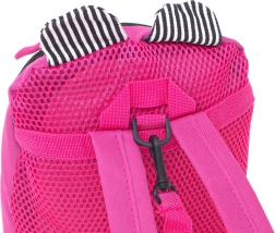 Draugiškas meškiuko veidukas ir dryžuotos ausytės skatina vaikus noriai nešioti kuprinę ir rūpintis savo daiktais.