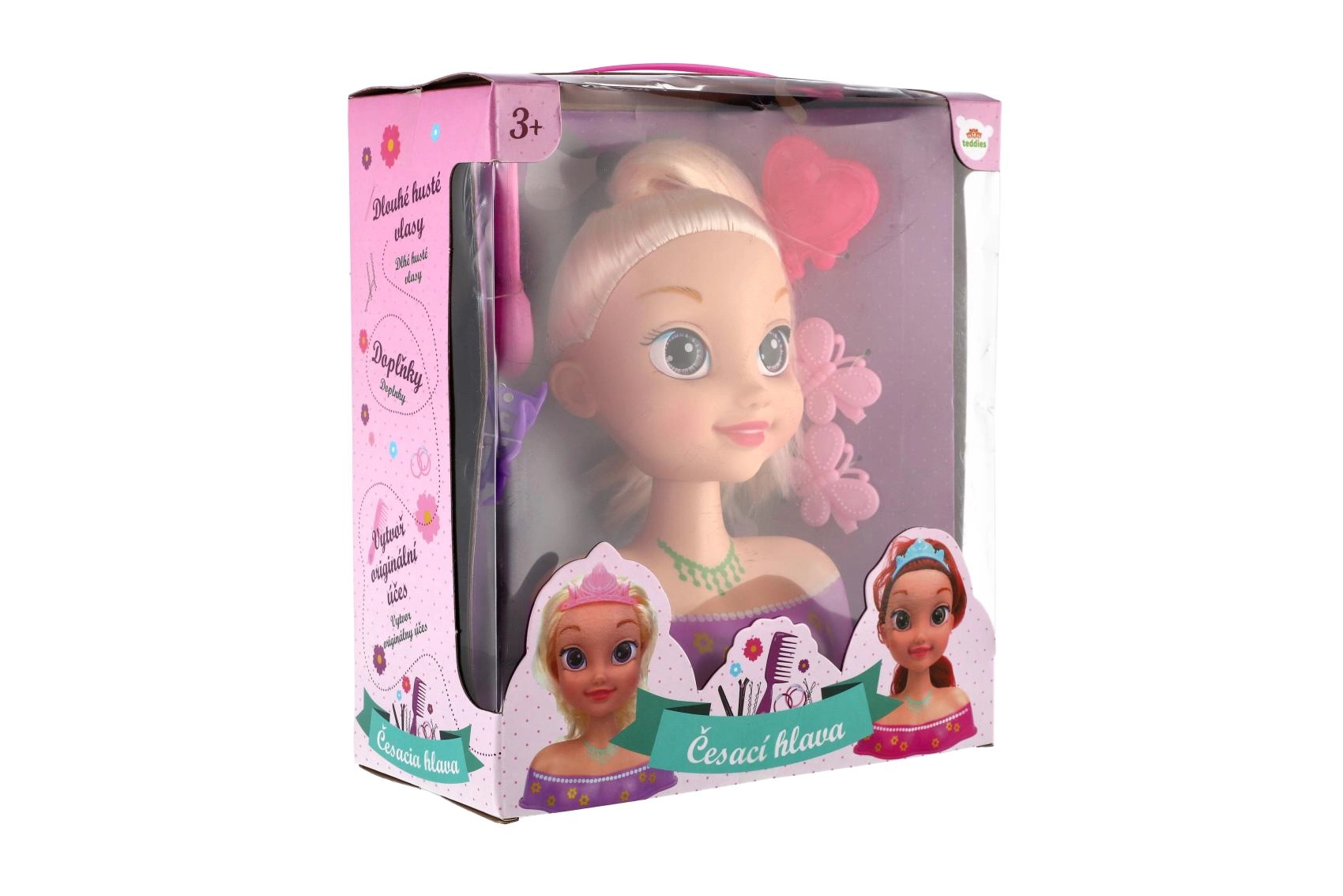 Išpildykite vaiko svajonę apie nuosavą kirpyklą su šia šukavimo galva su vešliais šviesiais plaukais. Dėl gausios komplektacijos lengvai sukursite uodegą, prancūzišką kasą ir begalę kasyčių. Kokybiški plaukai laiko formą, o tokie priedai kaip veidrodėlis, segtukai ir šukos palengvina kiekvieną transformaciją. Ideali kūrybinė veikla vaikams nuo 3 metų.