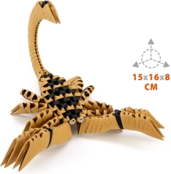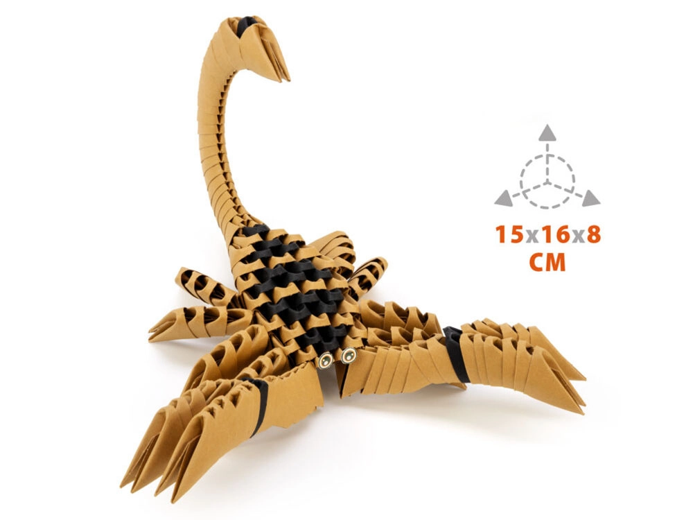 3D origami Skorpionas iš Alexander – smagi ir raminanti kūrybinė veikla vaikams ir suaugusiesiems. Detalės turi patentuotą formą su įspausta lenkimo linija, todėl pagrindinį modulį sulankstysite trimis paprastais judesiais, o vėliau jas suspausite tarpusavyje be klijų. Baigtas modelis atrodo dekoratyviai ir taps originalia kambario puošmena.