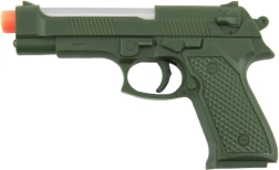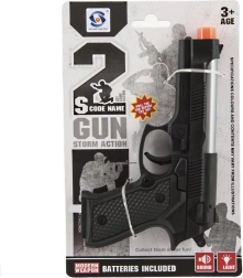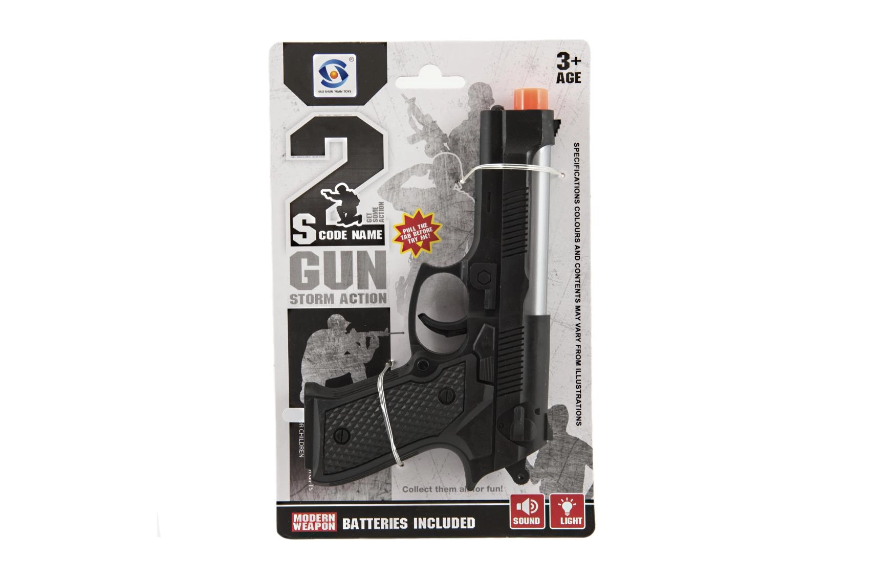 Smagus plastikinis vaikiškas pistoletas, 17 cm ilgio, įdėjus baterijas šviečia ir skleidžia garsus. Idealu mažiesiems nuotykių mėgėjams nuo 3 metų. Baterijos įtrauktos, tad vaikai gali iškart pradėti žaisti.
