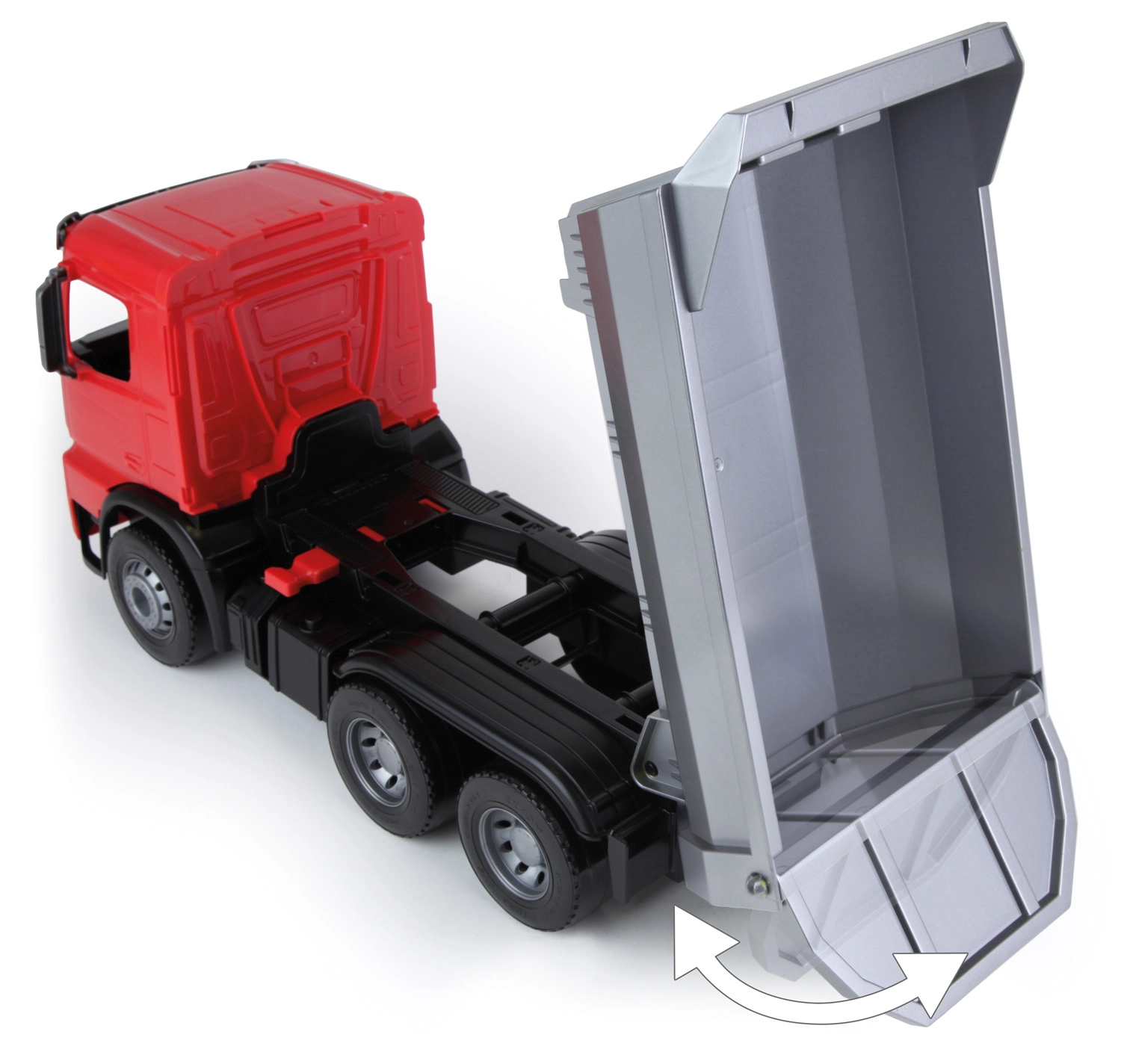 Realistiškas savivarčio modelis LENA MERCEDES AROCS, kurio ilgis 45 cm, pasižymi tvirta konstrukcija, cinkuotomis 6 mm plieno ašimis ir nulenkiama bei užrakinama kėbulo dėže. Idealiai tinka žaidimams namuose ir lauke, saugus vaikams nuo 3 metų, turi TÜV sertifikatą.