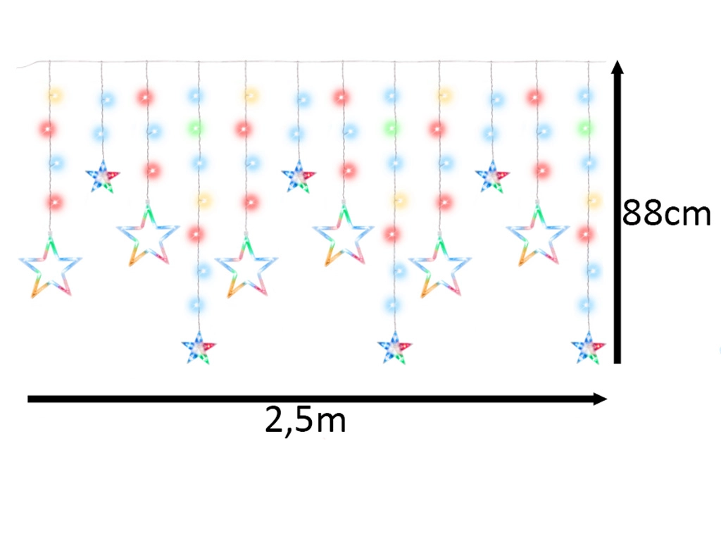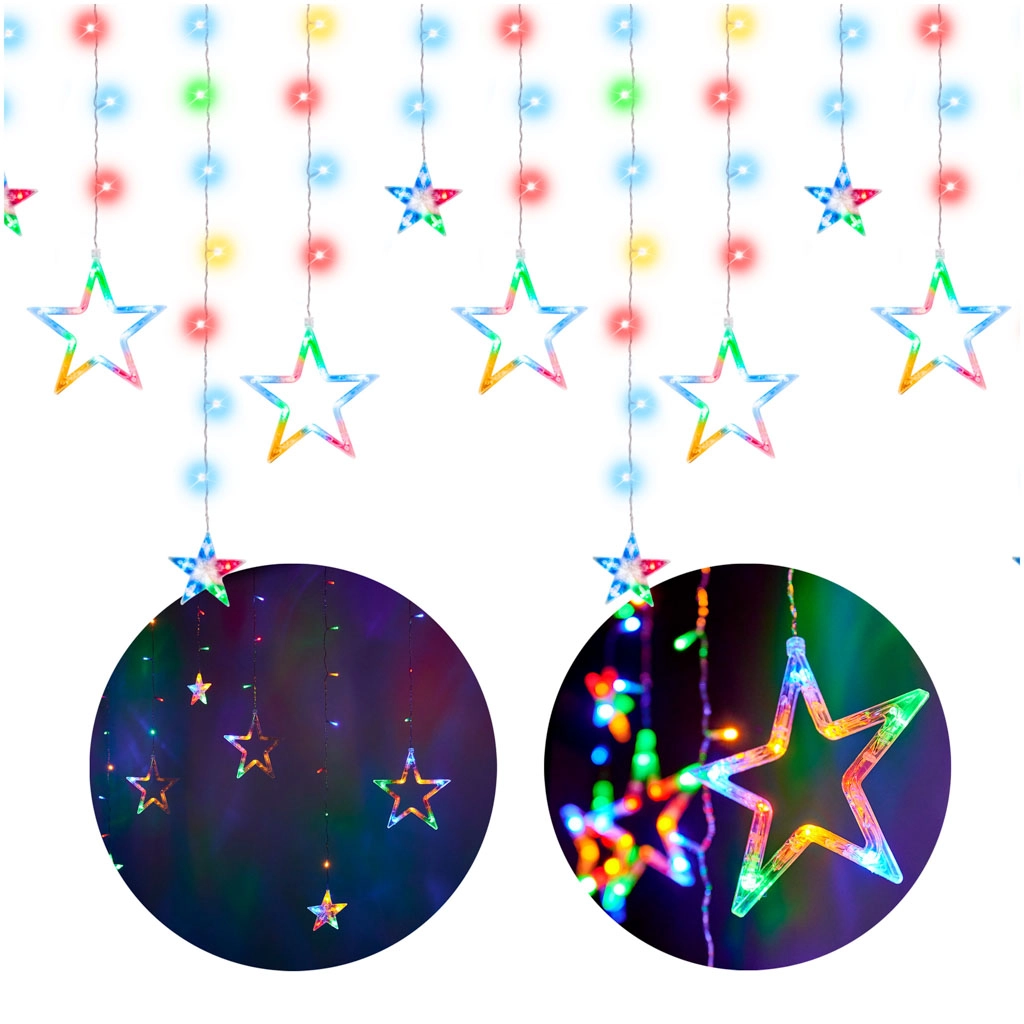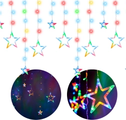 Įneškite į namus kalėdinio žavesio su LED šviesine užuolaida su žvaigždėmis, 2,5 m ilgio ir 138 LED. Ji suteikia daugiapalvį apšvietimą, 8 šviesos režimus ir maitinimą iš tinklo, kad veiktų be pertraukų be baterijų. Idealiai tinka kaip šventinė puošmena ir jaukus vakarinis apšvietimas visus metus.