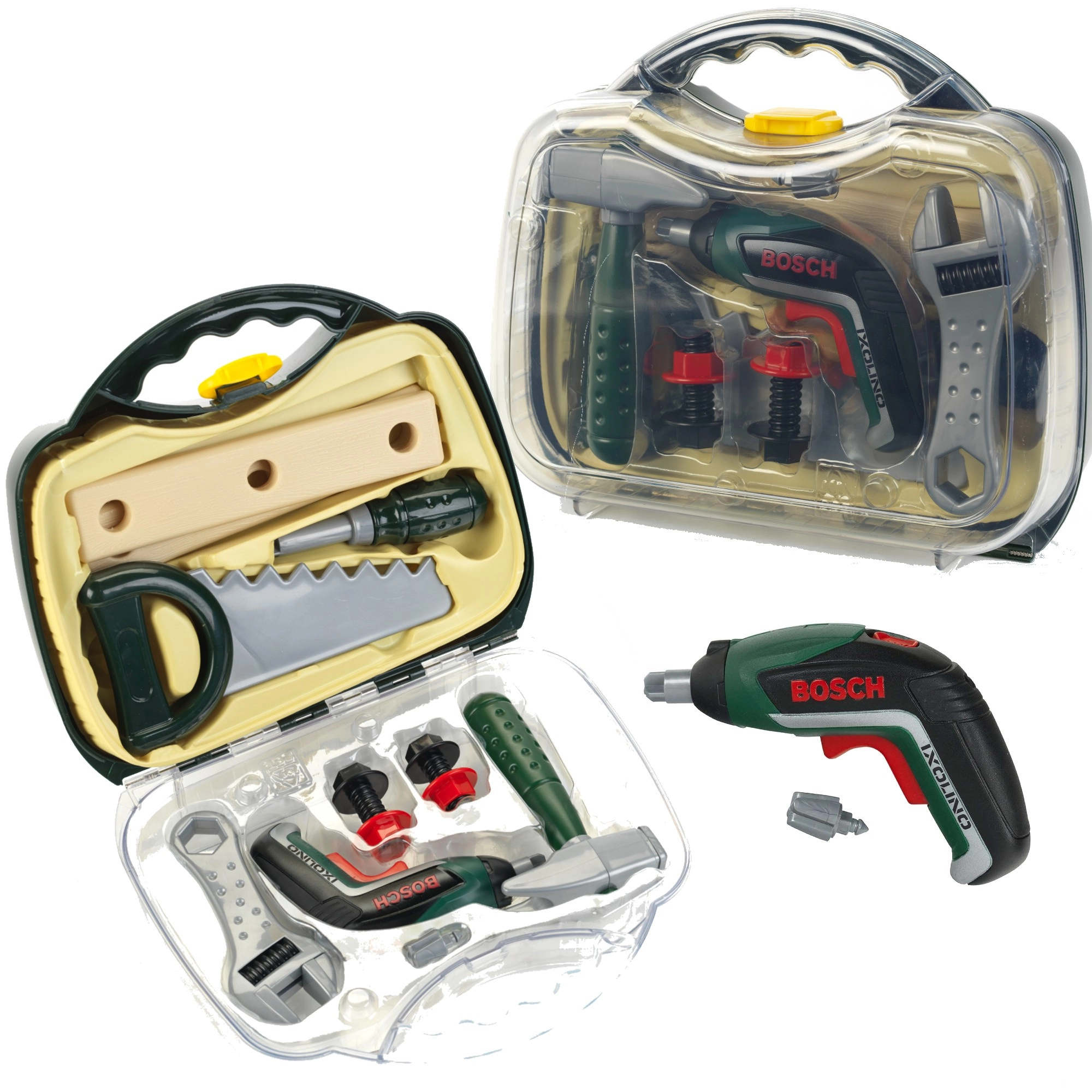 Vaikiškas įrankių lagaminėlis iš licencijuotos BOSCH Mini serijos, prekės ženklo KLEIN, siūlo realistišką meistro žaidimą. Viduje rasite baterijomis maitinamą akumuliatorinį suktuvą Ixolino II su sukimu į dešinę/kairę ir variklio garsu, papildytą kitais patvariais įrankiais. Tvirtas tamsiai žalias lagaminėlis su permatomu dangčiu ir dviem raudonais užraktais patikimai laiko viską kartu ir yra idealus mažiesiems meistrams nuo 3 metų.