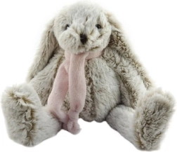 Minkštas plišinis triušiukas Tosiek, žavingas pilkas triušiukas su rožiniu skarele, bus puikus jūsų vaikų palydovas: