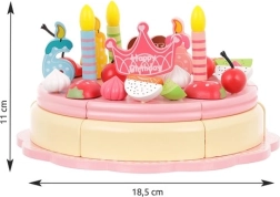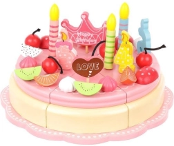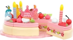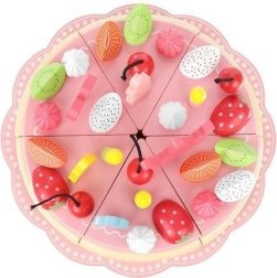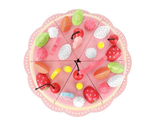 Šis tortas pagamintas iš kokybiškos medienos, kuri yra saugi vaikams ir pasižymi ilgaamžiškumu bei klasikiniu grožiu. Tortas sujungtas magnetais, todėl vaikai gali jį „pjaustyti“ ir patiekti ant pridėtų lėkštelių, naudojant įrankius.
