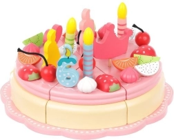 Žaismingai sukurtas medinis gimtadienio tortas su 48 dalimis siūlo kūrybines ir edukacines galimybes vaikams. Jis leidžia puošti tortą pagal savo įsivaizdavimą ir lavinti smulkiąją motoriką.