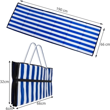 Sulankstomas paplūdimio kilimėlis – puikus palydovas paplūdimio ir lauko veikloms. Jis pagamintas iš patvaraus poliesterio su EPE užpildu, kuris užtikrina šiluminę ir vandens izoliaciją. Esant 1 cm storiui, jis apsaugo nuo kieto pagrindo, išliekant lengvas ir lengvai nešiojamas.