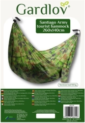 Mūsų turistinė hamako sūpynė Santiago Army – idealus palydovas lauko nuotykiams. Ji suteikia puikų komfortą ir apsaugą nuo vabzdžių dėl integruoto tinklelio. Paprastas montavimas leidžia greitai ir lengvai pakabinti hamaką bet kur, kur norite pailsėti.