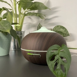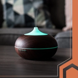 Elegantiškas difuzorius sujungia oro drėkinimą, aromaterapiją, jonizaciją ir LED lempą. Ultragarsinė technologija suskaido vandenį į smulkų rūką, kuris gerina kvėpavimo komfortą namuose ir biure. Dėl tylaus darbo puikiai tinka miegamajame ir vaikų kambaryje.