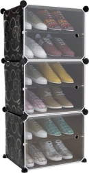 Su trimis permatomomis lentynėlėmis galite lengvai išdėlioti ir matyti savo batų kolekciją.