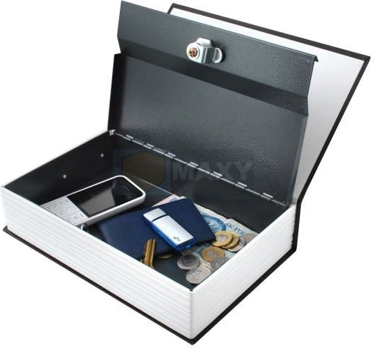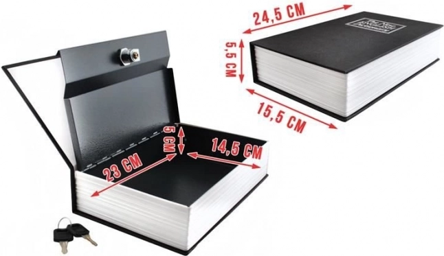 Diskreti knygos formos slėptuvė, primenanti anglišką žodyną, puikiai įsilieja į knygų lentyną ir saugiai apsaugo jūsų vertybes. Viduje yra metalinė dėžutė su raktiniu užraktu, ideali namams, biurui ir viešbučiui. Puikus sprendimas nekrintančiam į akis pinigų, papuošalų ir dokumentų laikymui.
