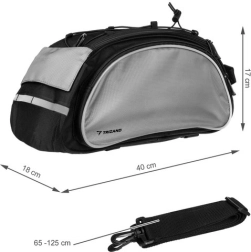 Universali Trizand dviračio rankinė – idealus kiekvieno dviratininko aksesuaras. Ji sukurta taip, kad dėl tvirto tvirtinimo su lipnia juosta lengvai tiktų daugumai dviračių modelių. Rankinė pagaminta iš patvaraus poliesterio su PU ir PVC danga, kas užtikrina ilgą tarnavimo laiką.