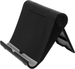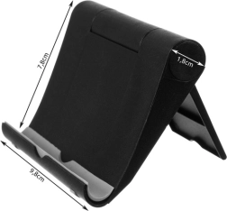 Kompaktiškas ir lengvas telefono stovas elegantiškos juodos spalvos siūlo universalų naudojimą namuose, biure ir kelionėse. Dėl reguliuojamo pasvirimo kampo lengvai nustatysite idealią padėtį vaizdo įrašams žiūrėti, vaizdo skambučiams ar skaitymui. Tvirta PP plastiko konstrukcija ir neslystanti atrama stabiliai laiko telefoną tiek vertikaliai, tiek horizontaliai.