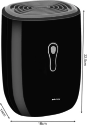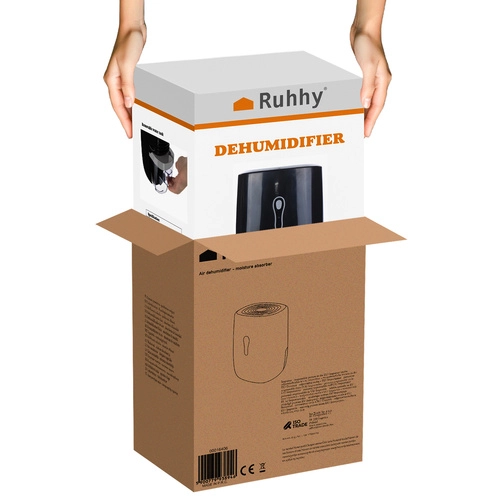 Kompaktiškas RUHHY oro sausintuvas veiksmingai mažina patalpų drėgmę ir neleidžia formuotis pelėsiui bei kvapams. Dėl Peltier technologijos veikia ypač tyliai, nereikalauja jokių užpildų ar chemijos ir siūlo 800 ml talpos rezervuarą su galimybe nuolat nutekinti vandenį per žarnelę. Dienos našumas iki 300–330 ml, automatinis išsijungimas užpildžius rezervuarą ir mažos 22,5 W sąnaudos daro jį idealiu sprendimu namams ir biurui.