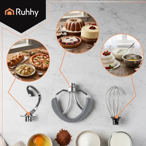 RUHHY planetinis maišytuvas – patikimas pagalbininkas šiuolaikinėje virtuvėje. Planetinė sistema užtikrina tolygų sumaišymą be negyvų zonų, o profiliuotas dubuo grąžina ingredientus atgal po šluotele idealiems rezultatams. Didelė 6,2 l talpa ir 1500 W galia lengvai susitvarkys su sunkiomis mielinėmis tešlomis, kremais ar įdarais.