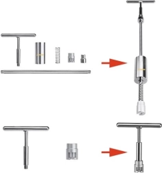 T formos rankena ir plieninis korpusas su chromuotomis detalėmis užtikrina tvirtumą, stabilumą ir patogų suėmimą kontroliuojamam traukimui.