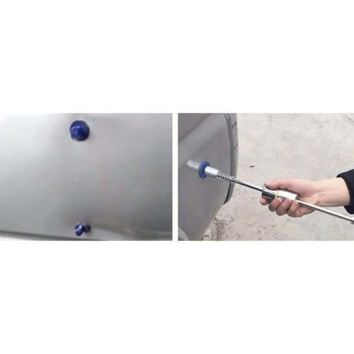 Su šiuo praktišku PDR rinkiniu įlinkimus pašalinsite savarankiškai ir be brangaus serviso. Smūginis slankiklis su T formos rankena ir keičiamos nailoninės „kempinėlės“/tabai įvairių dydžių užtikrina efektyvų duobelių iškėlimą nepažeidžiant originalaus lako. Idealu kėbului po nedidelės avarijos, pažeidimų stovėjimo aikštelėje ar po krušos.