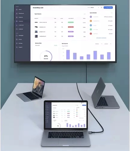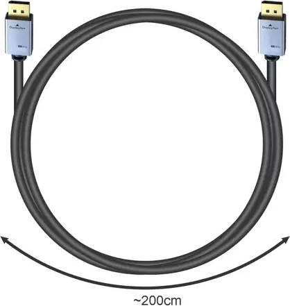 Visiškai suderinamas su visais įrenginiais, turinčiais DisplayPort, tokiais kaip TV, kompiuteriai, projektoriai ir kt. 200 cm ilgis idealiai tinka prijungti toliau esančius įrenginius.